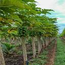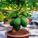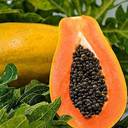 Papaya is a tropical fruit tree that belongs to the Caricaceae family. It is a fast-growing plant that can reach up to 10-12 feet in height and 3-4 meters in width. The papaya plant has a single stem that is usually unbranched, and the leaves are large, spirally arranged, and deeply lobed. The plant also produces small yellowish-green flowers that are borne in the axils of the leaves. The fruit of the papaya plant is a large, oval-shaped berry that can weigh up to several pounds. The ripe fruit has a yellowish-orange skin, a sweet, juicy flesh, and numerous small black seeds that are edible. Papaya fruits are rich in vitamins A, C, and E, as well as potassium, magnesium, and dietary fiber.