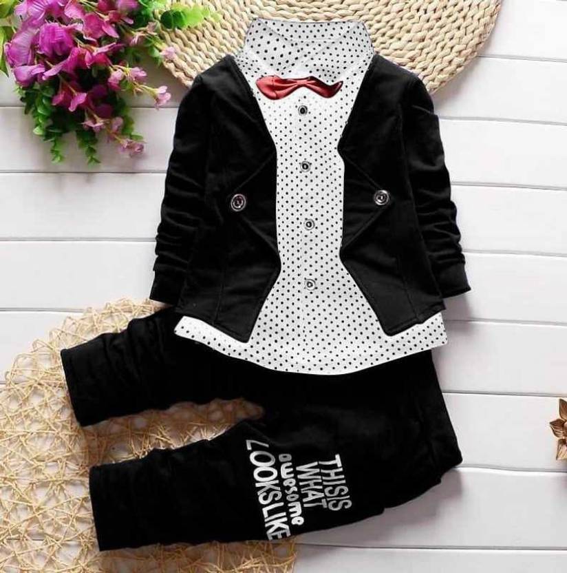 greecva fashion solid jacket / blazer / coat with denim blue pant trouser, white t-shirt and bow-tie is a perfect party-wear clothing suit set for infant toddler and young boys. This unique and intricate pattern is pleasing to the eye and will give a quirky look to your boy. Also, there is a cute little bow-tie that comes with it. Your baby boy is sure to look like a celebrity in such an outfit. A Must have!