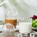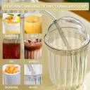 GRETZOMALL Round Line Design Mason Tumbler with Glass Dome Lid and Straw Glass Coffee Mug (500 ml)