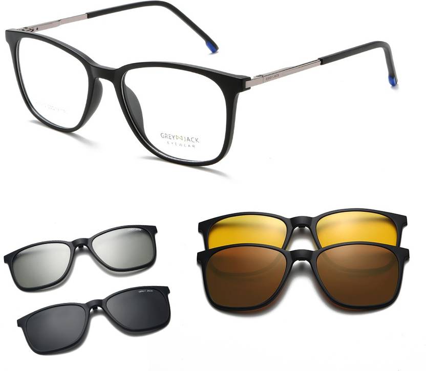 GREY JACK 3D Polarized Clip On Glasses,Square TR90 Spectacle Frame with 4PCS Magnetic Lens for Myopia Men Women 6070 Black Frame Gun Leg