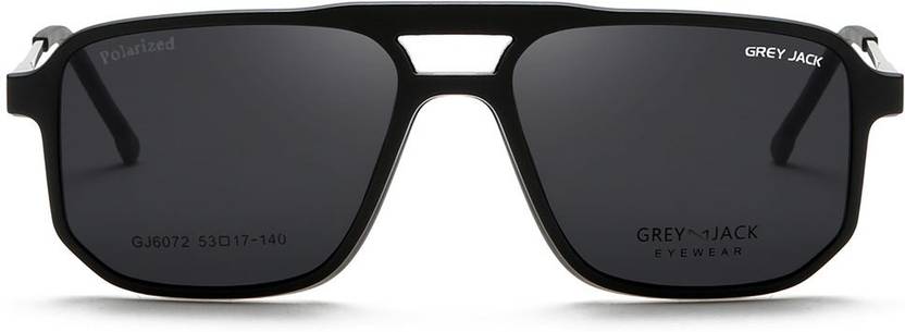 GREY JACK 3D Polarized Clip On Glasses,Polygon TR90 Spectacle Frame with 4PCS Magnetic Lens for Myopia Men Women 6072 Double Black Frame Silver Leg