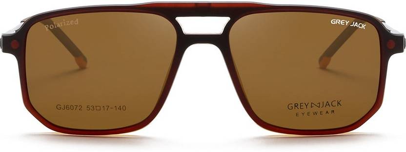 GREY JACK 3D Polarized Clip On Glasses,Polygon TR90 Spectacle Frame with 4PCS Magnetic Lens for Myopia Men Women 6072 Brown Yellow Frame Brown Leg