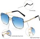 Polygon Sunglasses,Fashion Double Bridge UV400 Protection Metal Frame,Full Rim Eyewear for Men Women 0379 Gold Frame Double Blue Lens