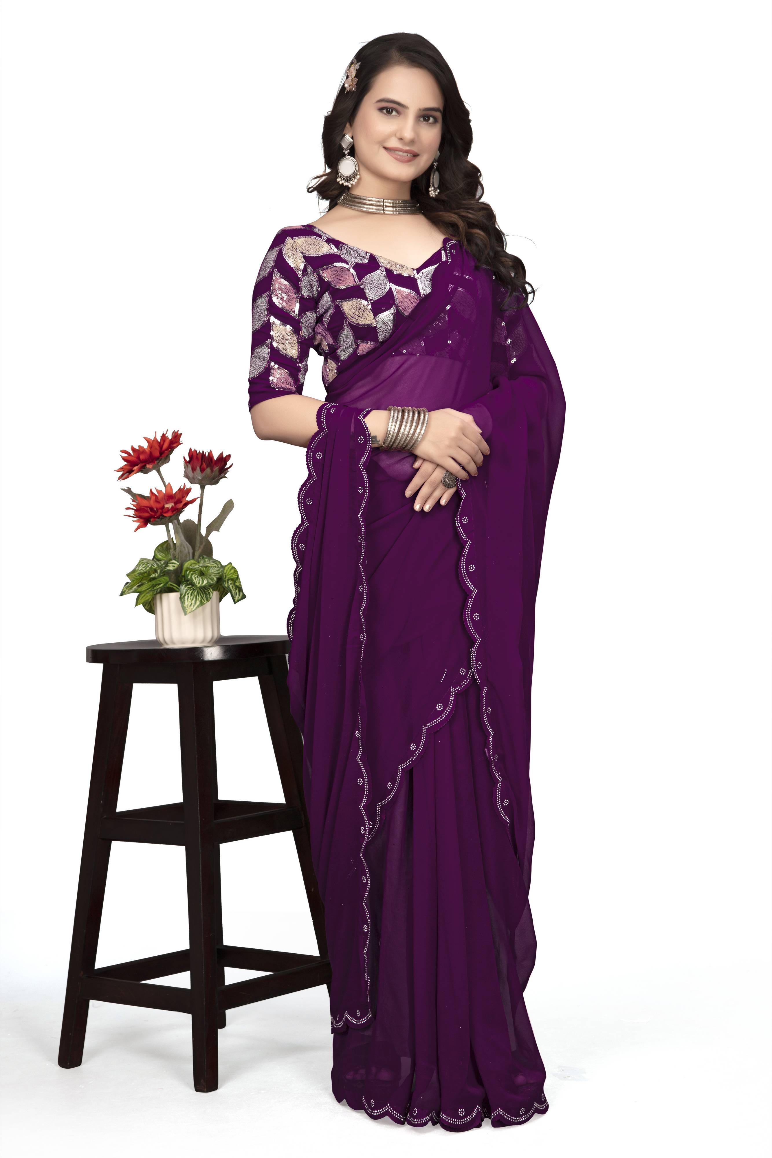 Solid/Plain Bollywood Georgette Saree (Purple)