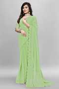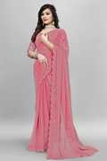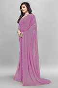 GRIFEZ Solid/Plain Bollywood Organza Saree (Purple)
