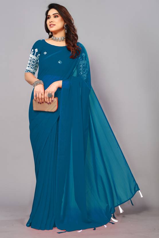 GRIFEZ Solid/Plain Bollywood Georgette Saree (Green)