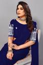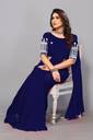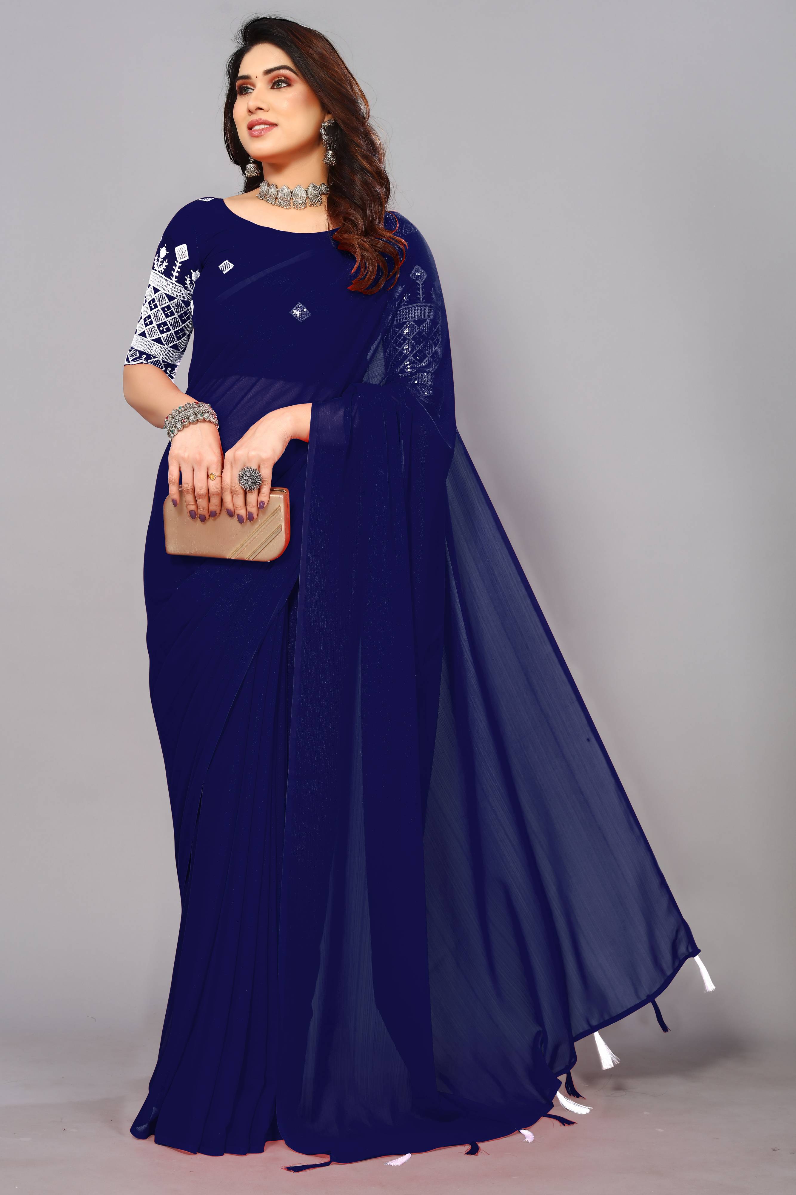 GRIFEZ Solid/Plain Bollywood Georgette Saree (Blue)
