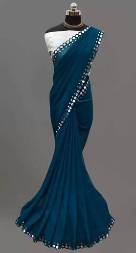 GRIFEZ Solid/Plain Bollywood Georgette Saree (Blue)