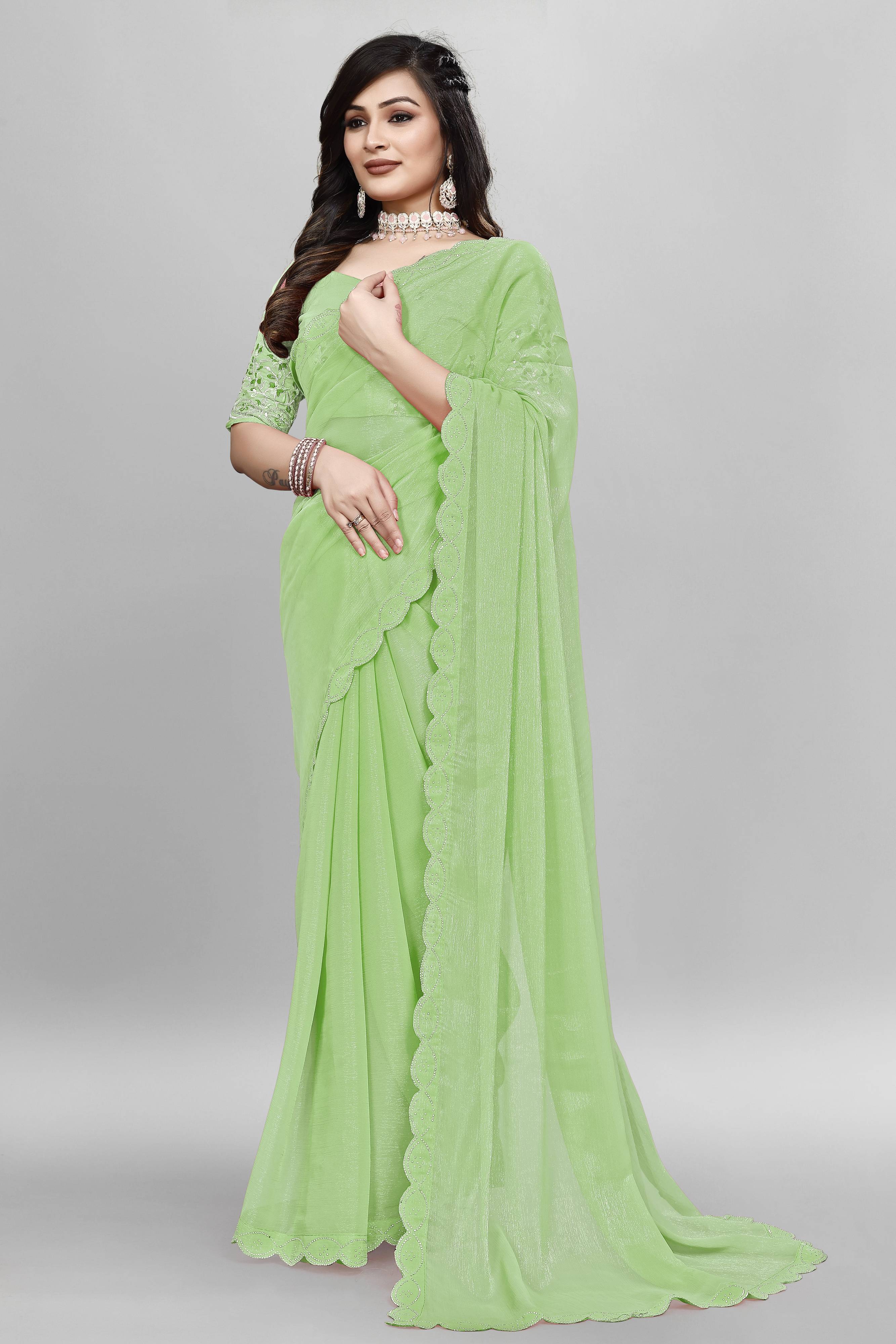 GRIFEZ Solid/Plain Bollywood Organza Saree (Light Green)