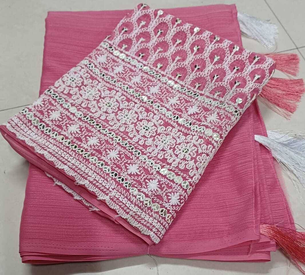 GRIFEZ Solid/Plain Bollywood Georgette Saree (Pink)
