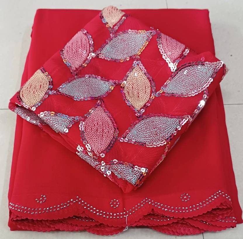 GRIFEZ Solid/Plain Bollywood Georgette Saree (Pink)