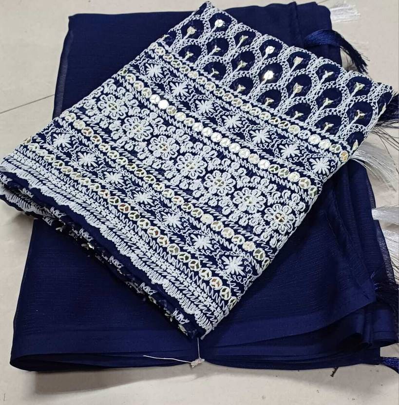 GRIFEZ Solid/Plain Bollywood Georgette Saree (Blue)