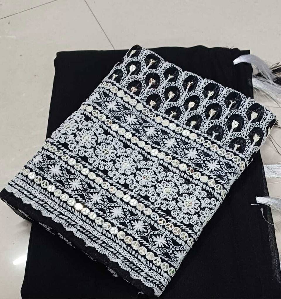 GRIFEZ Solid/Plain Bollywood Georgette Saree (Black)