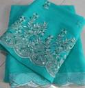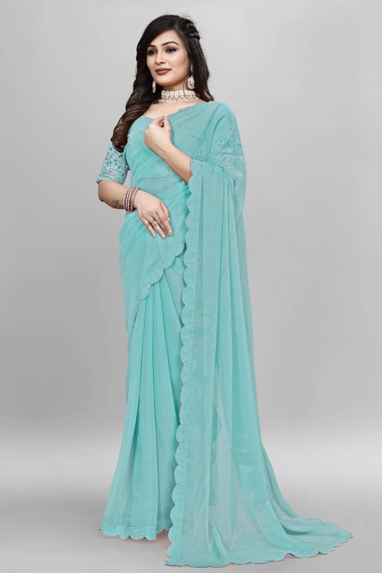 GRIFEZ Solid/Plain Bollywood Organza Saree (Light Blue)