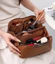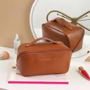 Grilazza Large-Capacity Portable PU Leather Cosmetic Storage Makeup Pouch Organizer (Brown)