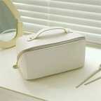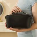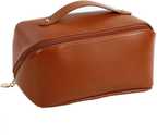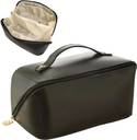Grilazza Portable Large-Capacity PU Leather Cosmetic Storage Makeup Pouch Organizer Travel Toiletry Kit (Black)