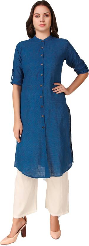 GRIMA Women Solid Cotton Blend Straight Kurta (Blue)