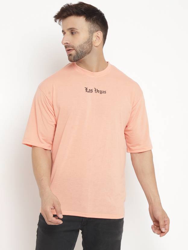 Gritstones Printed Men Round Neck Pink T-Shirt