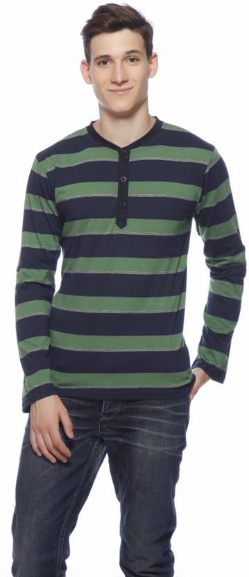 Gritstones Men Striped Round Neck Cotton Blend Green, Black T-Shirt