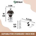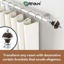 GRIVAN Black Rod Rail Bracket, Curtain Knobs, Curtain Hooks Metal (Pack of 12)