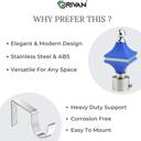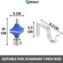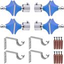 GRIVAN Silver, Blue Rod Rail Bracket, Curtain Knobs, Curtain Hooks Metal (Pack of 4)