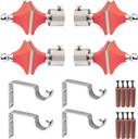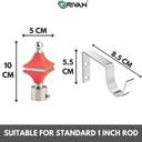 GRIVAN Silver, Red Rod Rail Bracket, Curtain Knobs, Curtain Hooks Metal (Pack of 4)