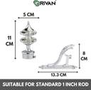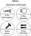 GRIVAN Silver Rod Rail Bracket, Curtain Knobs, Curtain Hooks Metal (Pack of 6)