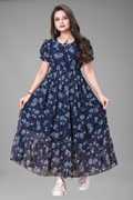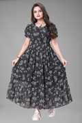 Western Dress for Women Georgette long maxi dress Digital Print With All-over Floral Print-RACHI