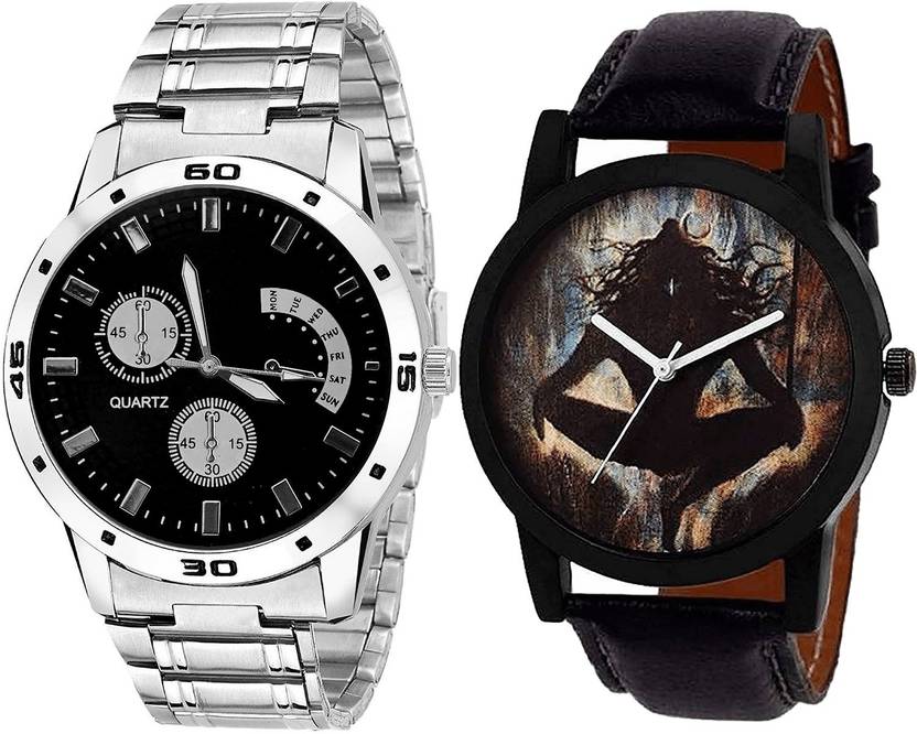 Treading Quartz Mahadev Analogue Silver And Black Color Boys And Men Watch - B83-B24 (Combo Of 2 )