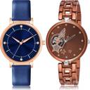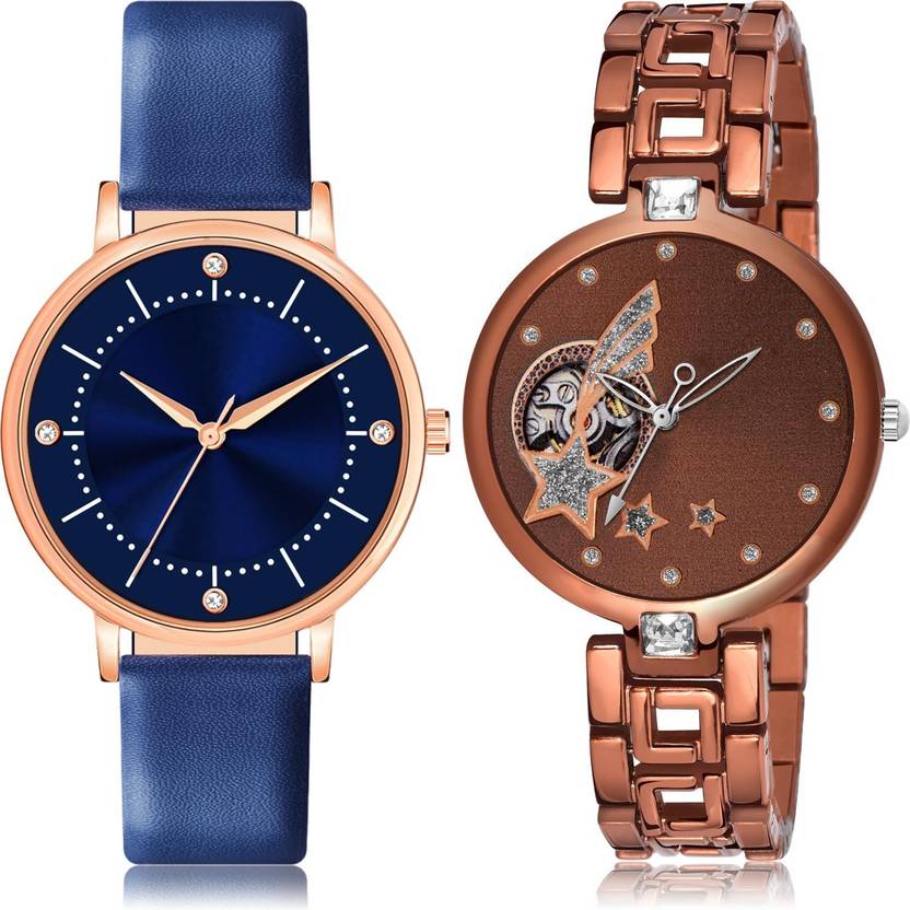 Dial Colour : Blue And Brown ; Band Colour : Blue And Brown ; Case Shape : Round ; Band Material : Synthetic Leather And Metal ; Case Diameter : 38 And 34 mm ; GROOT New Wrist casual synthetic leather And star chain Blue And Brown Colour Analog Synthetic Leather And Metal Belt 2 Watch Combo For Women And Girls - GM515-G663