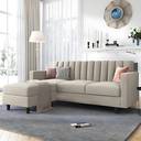 Groovecraft Adrista L Shape 3 Seater Reversible Sofa with Ottoman for Living Room Fabric 3 Seater Sofa (Finish Color - Beige, DIY(Do-It-Yourself))