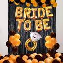 Package includes - 1 set Bride to Be letter foil balloons, 40pcs black & golden balloons, 2pcs black foil curtains, 1pc ring foil balloon.