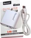 GROROX 20 W Qualcomm 3.0 3.1 A Dual Port Tablet Charger with Detachable Cable