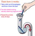 • ?PREVENTING CLOGS & ODOR-FREE:The Drain Stick is effective drain deodorizer and cleaner, it can break down grease, fats, oils, soap scum and food to keep the sink clean, eliminating embarrassing odor from drains to keep your house fresh. Save your money on plumbers and drain snakes.
