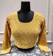 Premium terry jacquard readymade blouse for women designed with elegant textured pattern and stylish full sleeves, perfect for wedding wear, party wear, festive wear, and bridal wear. This designer blouse is crafted from high-quality terry jacquard fabric that offers a rich look, soft touch, and long-lasting comfort. Ideal for pairing with sarees, lehengas, and ethnic skirts, this ready-to-wear blouse is suitable for receptions, cultural events, traditional celebrations, and special occasions.