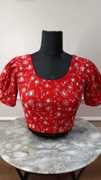 Designer Floral Printed Crop Blouse with Short Puff Sleeves and Front Princess Cut – Versatile Ethnic Top for Sarees, Skirts, and Fusion Look.(SIZE: Free Size (30"-36" & 38" - 40")/ LENTH: 15 & 15/ SHOULDER: 12 & 13/ WAIST: 26 & 29/ Type of Closure: SLIP ON