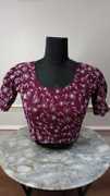 This stylish floral blouse is a perfect fusion of ethnic grace and contemporary fashion. Featuring eye-catching puff sleeves, princess seams for a structured fit, and a scoop back that adds depth to the design, it offers both elegance and comfort. The luxurious fabric with printed floral motifs is ideal for weddings, festive occasions, or special functions. It is pre-stitched for convenience and designed to complement a variety of traditional Indian ensembles.