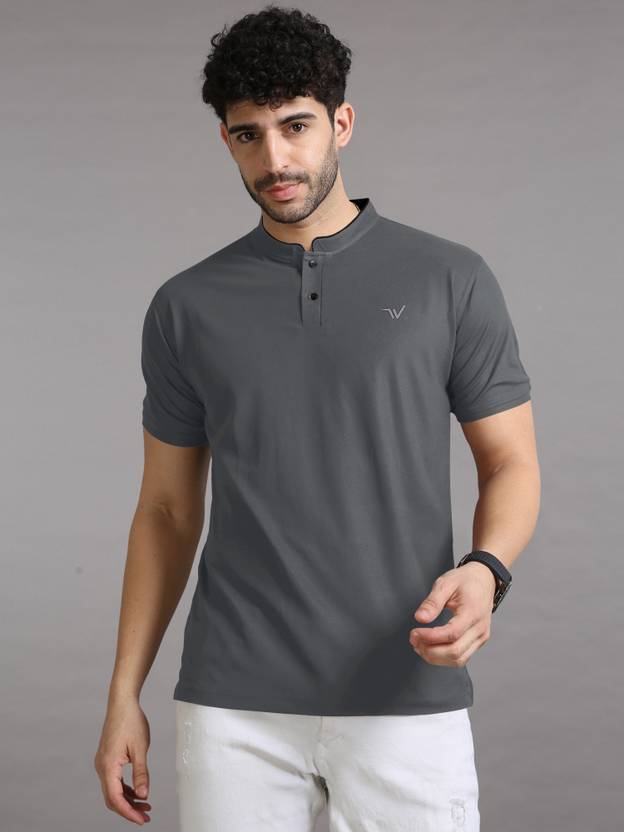 Growwax Solid Men Mandarin Collar Multicolor T-Shirt