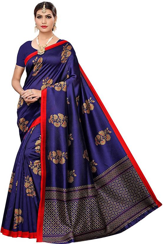 Grubstaker Printed Kanjivaram Art Silk Saree (Blue)