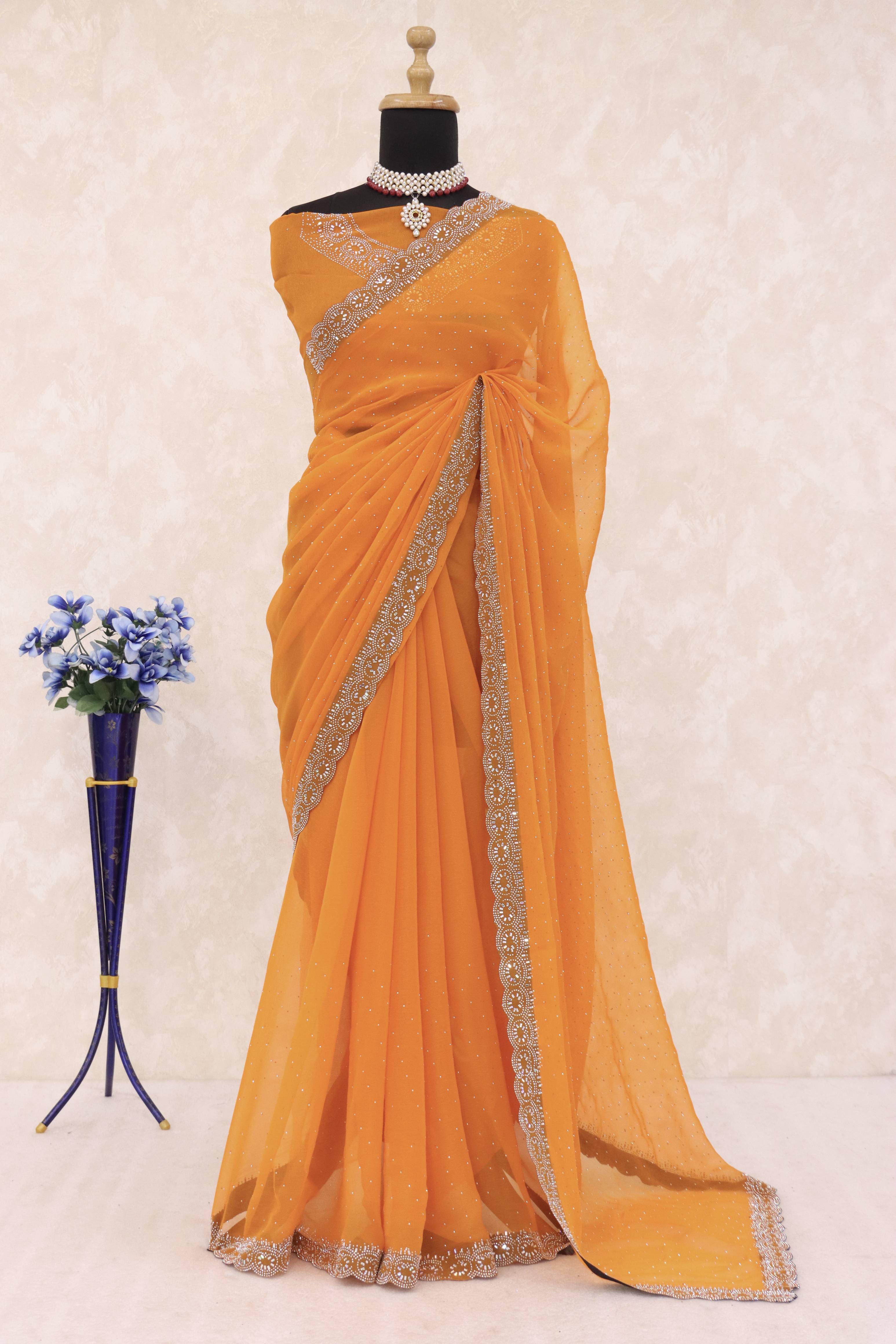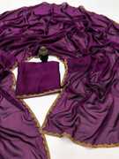 GRUHNAREE Solid/Plain Bollywood Art Silk Saree (Blue)
