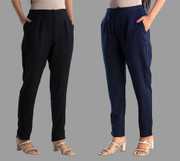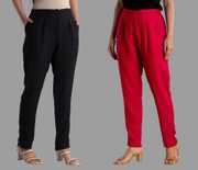 GRUSH Slim Fit Women Black, Maroon Trousers