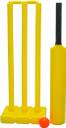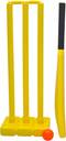India's favorite sport Cricket in Indoor format, Ideal for junior cricket training, Bat Length - 80 cm; Stump Length - 70 cm; Ball Diameter - 7 cm, Material - High-density polyethylene (HDPE) thermoplastic ; Colour - Yellow Bat and Wickets, Ball and Red cover, Pack of 1 bat, 1 ball, 1 stump base, 3 stumps, 2 Balls, 1 carry case