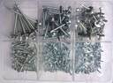 4.2 mm x 13 mm (#8 x 1/2") – Qty 50 Nos screw, 4.2 mm x 19 mm (#8 x 3/4") – Qty 50 Nos. screw, 4.2 mm x 25 mm (#8 x 1") – Qty 50 Nos screw, 5.5 mm x 35 mm (#12 x 1.1/2") – Qty 20 Nos screw, 5.5 mm x 45 mm (#12 x 1.3/4") – Qty 20 Nos screw, 5.5 mm x 75 mm (#12 x 3") – Qty 10 Nos screw