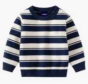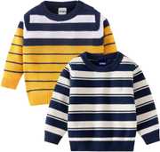 Featuring an attractive striped pattern, this boy's sweater offers a timeless design that suits a variety of occasions. These contrasting stripes add a touch of modern style while maintaining a classic appeal. This combination ensures versatility, allowing this sweater to pair easily with different outfits. Whether worn on its own or layered with other pieces, these stripes create a striking visual effect that enhances the overall look.