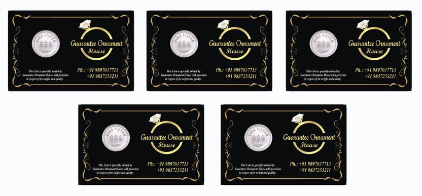 Guarantee Ornament House, Just the name is enough. Who would you trust other than India's 60yr old firm to manufacture BIS Hallmarked 999 silver Gift your loved ones world class, mirror finished and customized silver coins. The purity and price will never be complain. It's manufactured in a fully integrated refinery with in-house and buy back guarantee you have no reason to worry