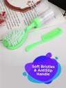 The soft natural bristles of brush and comb teeth with rounded ends are ideal for baby's delicate scalp. Gently combs babys hair. Soft rounded teeth edges of comb for smooth untangling of baby’s fine hair without pulling and breakage. Brush handle had rattle/chime in it, so that the kids will play while grooming. It has large handles that allow easy and safe grip. Specially designed bristles that cause no harm to your baby’s soft skin.