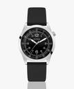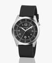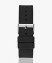 Guess Dress Max Men 42mm Round Silver Tone Stainless Steel case with Black dial and Black Silicone Strap.