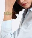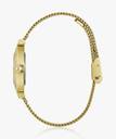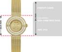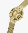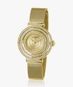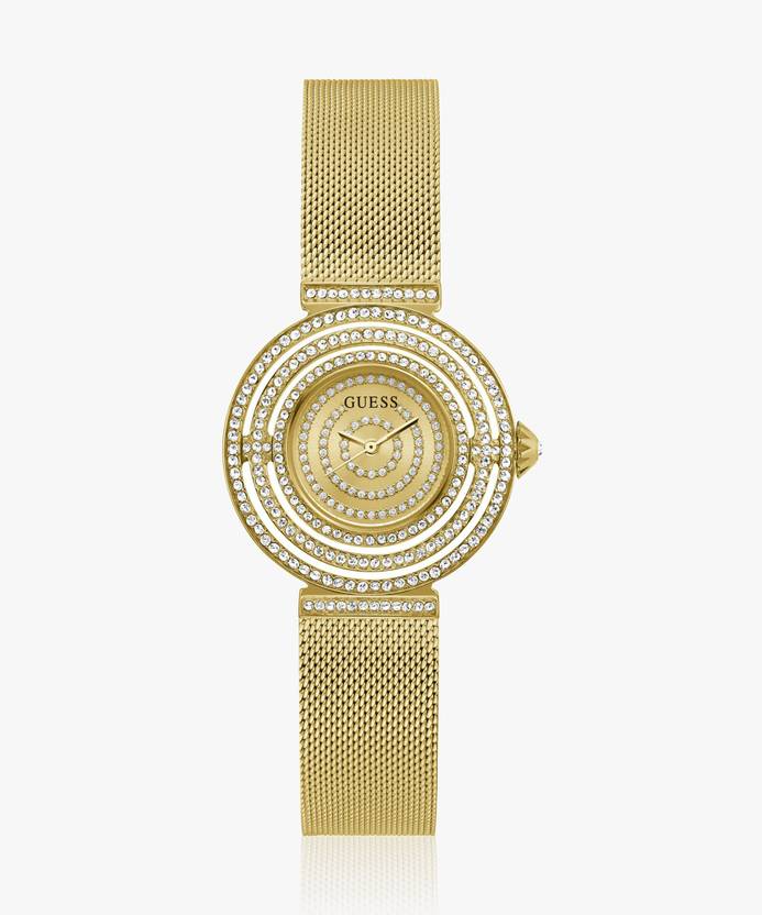 Guess Dress Dream Women 32mm Round Gold Tone Stainless Steel Case with Crystal and Sunray Champagne Dial and Gold Tone Stainless Steel Mesh Bracelet.