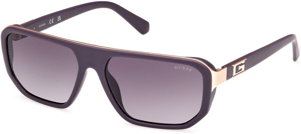 GUESS % UV protected sunglasses for Men with Matt Violet-Shiny Light Gold Alloy frame and Smoke Gradient colore lens