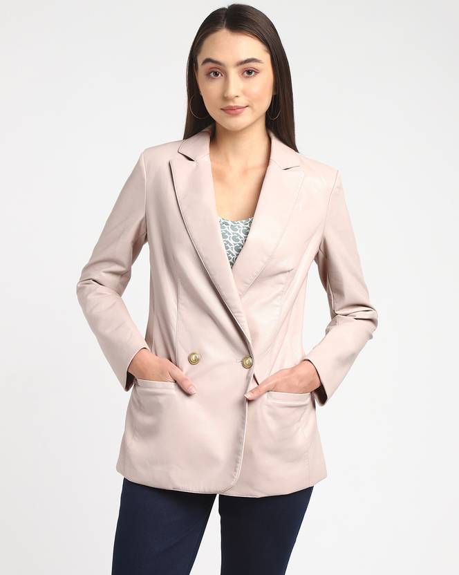 GUESS Solid Single Breasted Casual Women Blazer (Pink)